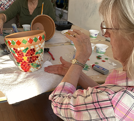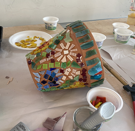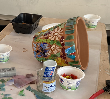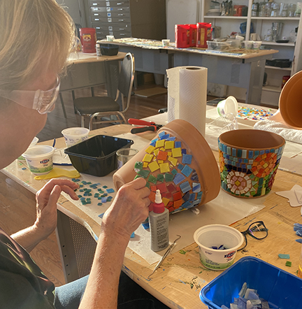 We also offer mosaic workshops. As with many of our offerings, we will post a general workshop on our calendar, but if you can gather 4 or more of your friends/family you can set a date and a time to create your own project. The price would be according the the size of the project. Contact Catherine if you are interested in doing so.