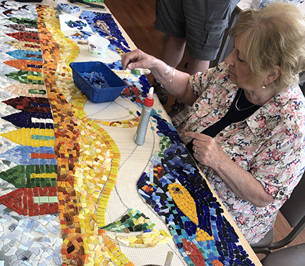 New to The Henderson is our stained glass and mosaic program. We will offer a stained glass studio every Saturday. Please RSVP on our calendar for studio time as there is limited space. Kathy Baumgarner will be the instructor and will work with you on individual projects.